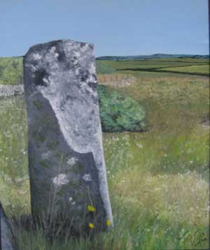 ![]() I researched for 'Stonehenge at Work' trying to understand its' purpose through the eyes of esoteric astrology and astronomy. The henges are thought to have a focussing effect on unseen energy forces and I depicted the light/energy transmitted underneath the earth and into the surrounding landscape. This image shows the sunlight from midwinter's dawn passing the remaining outer Guidestone and entering the henge through the lintels to hit the horseshoe-placed stones of the inner circle and forming a vortex above it. Light is also reflected onto the outer stones and then out into the world in the four directions of Earth. |
